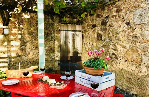 Built from local stone with exposed brickwork and wooden beams, The Stables at La Blatière has been beautifully converted to provide a wonderful holiday home, full of character and charm. The outdoor terrace with its pergola with grape vines and fairy lights is the perfect place to enjoy a glass of wine while the sun goes down.