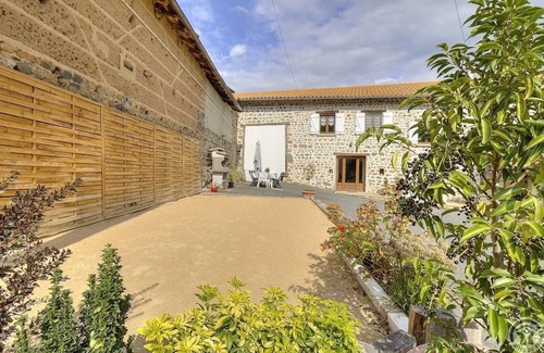 In Haut Beaujolais, very close to the Saône et Loire, in the countryside, Joëlle and Bernard, recently retired farmers, will be delighted to welcome you to their 2 farm cottages located just 1km from the village of Trades. Animal lovers, they will be able to show you the chickens, cows and sheep of their son who took over the farm. (possibility of buying organic eggs) Many walks in the forest are available to you. You will have a large shared courtyard, with a bowling green and a covered shelter for 3 vehicles. The renovated stone house has 2 adjoining single-storey gîtes and the owners' accommodation. The cottage for 3 people has on the ground floor, a day room with kitchen area, a sofa. Shower room and separate toilet. Upstairs, you will have access to a bedroom for 2 people (1 double bed) and a sleeping area on the mezzanine with 1 single bed. Outside: the terrace area (south facing) is equipped with table, chairs and stone charcoal barbecue for good times with family or friends. You can enjoy this space in complete peace, the owners have their own exterior overlooking the other side. Ideal for a night, a weekend or a stay on the farm. Possibility of renting the 2 gîtes for a capacity of 10 people.