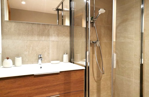 This beautiful new apartment, with 7 beds, on the second floor of a luxury apartment building with an elevator, is both charming and modern.