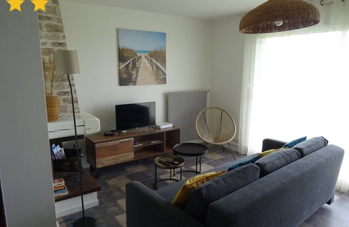 Magnificent flat with shared exterior offering a magnificent view of the sea. It includes a living room with a sofa bed, a fully equipped kitchen: induction cooker, microwave, oven, coffee machine...