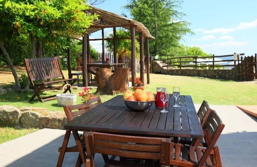 Typical recently renovated tuscan farmhouse with large private garden that looks out over the valley as it gently descends towards the Etruscan Coast. Situated about 500 m from the old town centre of Roccastrada, LaFornace lies ina quiet spot with a nice view. Furnished with warm and modern pieces, the house is ideal for a quiet and pleasant holiday. Outside, guests may enjoy the use of the private 5x10 m swimming-pool.The medieval town of Roccastrada has all the main types of shops and close by you will find places to try typical Maremma cooking or buy local products. The Chianti area is approx 50 km away, many characteristic and traditional towns in the area merit a visit. Rustic country house "La Fornace", built in 1816. 500 m from the centre of Roccastrada, on top of a hill. Private: garden 800 m2 (fenced), swimming pool fenced (5 x 10 m, depth 140 cm, seasonal availability: 06.May. - 30.Oct.). Outdoor shower, arbour, garden furniture, barbecue. In the house: with TV, internet access, sun terrace, central heating system. Room cleaning on request (extra). 400 m long motor access to the house (via unmade road). Parking at the house. Shop 500 m, supermarket, restaurant, bar, bus stop 700 m, sandy beach 40 km. Golf course (10 hole) 30 km, tennis 1 km, riding stable 30 km. Nearby attractions: Terme di Petriolo 10 km, Castiglione Pescaia, Punta Ala 40 km, Siena 50 km.