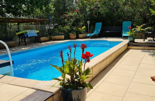 1 veranda opening entirely on garden and seen on swimming pool - Swimming pool reserved to our holiday makers (there is only one location) - For the amateurs cyclists: the cycle track is with 4mn. Bus stop 1mn. Mountain, sea and beaches nearby (5 minutes by car separates us from the first beach) Main shops 2mn. (on foot) .. Parking - wi-fi (free). The Guard whose medieval old town is located on a rock is geographically well located for all the activities Festivals (shows and concerts offered by the Commune) and Markets Provençaux (3 markets / week for it alone). Beginning AUGUST: spectacular Medieval festival in the city center, during 5 days; Add to this the Provençal scents accompanied by the song of Cigales.