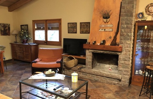 Fully equipped with three bedrooms, 2 bathrooms, fully equipped kitchen (fridge freezer, ceramic hob, oven, dishwasher, toaster, explimator, Nespresso machine and Italian coffee maker) and a spacious dining room - living room with fireplace (with wood provided) and air conditioning .