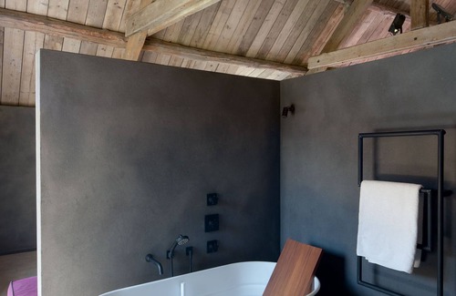The house can accommodate 10-12 people. On the ground floor there are three bedrooms, each with private bathrooms. In an annexe, which opens with huge windows to the large terrace surrounded by meadows, are the kitchen and a spacious dining area. A staircase leads up to the first floor: a large, loft-like room with fireplace, separate 'open-ceiling' bedroom with private bathroom, bath and WC. Wooden cabin Couchette, bedroom with bathroom for 2 up 4 people (2 bunk beds) is located in the garden, 50m from the house. Great place for lovers of teenagers ! The property is surrounded by pastures and forests.