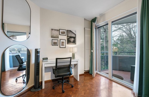 Escape to the tranquil shores of Lake Lugano at this inviting studio apartment in Paradiso (Lugano) with a shared lakefront garden. The perfect getaway for couples, this contemporary retreat for 2 is quietly situated on the 3rd floor of an 8-story building (with a lift).