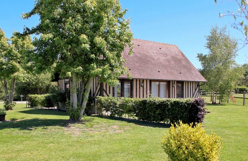 Beautiful farm estate "Corbon". 5 houses in the residence. 900 m from the centre of Corbon, 9 km from the centre of Beuvron-en-Auge, 30 km from the centre of Caen, 30 km from the sea, in the countryside. For shared use: property 17'000 m2 with trees, meadow, orchard, pond, swimming pool heated (8 x 4 m, depth 150 cm, seasonal availability: 01.Apr. - 31.Oct.). In the complex: washing machine, tumble dryer (for shared use). Parking on the premises. Shop 4 km, supermarket 15 km, bus stop "MERY-BISSIERES-EN-AUGE" 9.3 km, sandy beach "Cabourg" 30 km. Please note: car recommended. The owner lives on the same property. Animals in the neighbourhood.