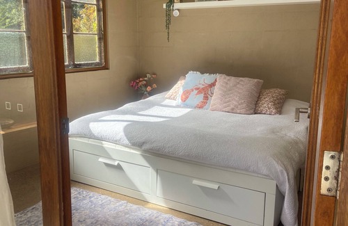 The "Pool Room" has its own private entry, independent from the house and comfortable for two. Private bathroom and toilet. King size bed. TV and Internet access. Tea or coffee (kettle), microwave, electric stove, fridge and smoothie maker, plates and cooking utensils available in the room.