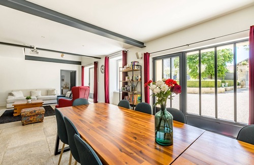 You can have breakfast on our outdoor terrace which borders a 4 hectare garden. At your disposal: 5 bedrooms, 3 bathrooms, 4 WCs.