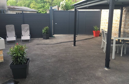 At the foot of the SEDAN fortified castle, a 2-minute walk from the city center. Pleasant detached house with beautiful outbuilding (garden furniture, barbecue, arbor, sunbathing area, as well as a garage for cars, motorbikes or bicycles).