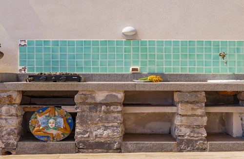 The highlight of the apartment is the lovely terrace (fully furnished with gazebo, table, chairs, deckchairs and sunbeds) from which you can enjoy a breathtaking view of the sea, the stacks and the charming Isola Lachea. The ideal place to relax where to have breakfast, sip a drink or enjoy a meal cooked at the barbecue-corner made of lava stone. All in front of a magical view.