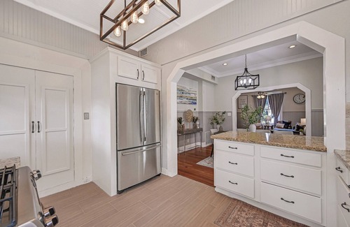 Step into Lafitte's Lookout, Galveston’s ultimate getaway. Just 4 blocks from the beach, this beautifully remodeled home features a massive pool, hot tub, designer furnishings, & elegant coastal decor. Lounge in style, dine under the stars, and relax by the fire pit. From the sun-kissed deck, 2 large private balconies, to the serene outdoor lounge areas, every detail is crafted for elevated comfort. Enjoy the BBQ grill, sun loungers, and a space made for unforgettable memories! Welcome to Lafitte's Lookout – a beautifully remodeled, high-end Galveston retreat just four blocks from the beach. This spacious coastal getaway offers stunning design, comfort, and style in every room, with plenty of space for families, large groups, or anyone seeking an elevated island experience. From the expansive private pool and hot tub to the thoughtfully curated interiors, every inch of this home is designed to impress.