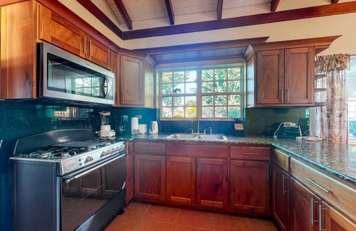 Escape the hustle and bustle of the everyday and indulge in a Caribbean paradise at this quiet retreat right on the calm waters of the lagoon! With private beachfront across the road, a dock, and a large deck for sipping your favorite tropical cocktails, you will have plenty of room to spread out and enjoy the ample sunshine. Kick your feet up in the hammock under the shade of the palapa while calming, sea breezes lull you to sleep. Or, cast directly off the dock and reel in a fresh Snapper or one of the many other species of fish that frequent the waters around the home. When everyone builds up an appetite, the well-equipped, full kitchen includes a gas range, coffee maker, blender, large fridge, and plenty of utensils to prepare the day's catch. Plus, the open layout of the living, dining, and kitchen areas makes for easy mingling and entertaining. Gather for game nights at the large dining table for six or kick back on the sofa for a movie night as the sun goes down. When it is time to hit the hay, all four bedrooms can be easily accessed with this single-story layout, so no one will have trouble getting a bit of shuteye when the stars come out.
