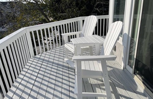 Gorgeous reverse-living Loveladies contemporary on a private easement that is bright, airy and very spacious. It is located on lagoon w/ docking space. Includes 4 bedrooms – 2 of which have king sized beds w/ en suite baths – plus a den with sofabed making the occupancy 12. Top floor has a huge great room – dining area w/ table large enough to seat 12 – Kitchen w/ white cabinets and stainless steel appliances plus tons of counter space. . Among the amenities – New W/W Carpet in Bedrooms of the house - 4 Smart TV’s – 2 Gas Grills (1 on ground level and 1 on top deck off kitchen ) – Updated Composite Dock – Large Ground Level Deck – Ping Pong and foosball table are in garage and with an extra refrigerator. Decks off both floors with lovely lagoon views; Roof top deck, with lagoon view – plenty of parking. Bikes for tenant use.10 Beach Badges provided, but not guaranteed