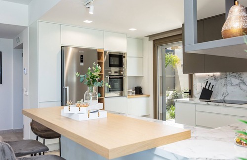 The Villa is designed with relaxation and good times in mind; lounge in the summer warmth by the outdoor pool, sink into squishy sofas with a glass of wine and gather together in the open-plan kitchen-diner for long nights of home cooked food and deep, roaring laughter. There is free secured parking space inside the Villa’s premises for 3 cars • The property is well-equipped with all the mod cons; Fridge with freezer, Electric stove with oven, Nespresso machine (small capsules) & Filter coffee machine, Microwave, Food Processor (Multi), Dishwasher, Washing Machine, Iron & Board, 4 Hair dryers, open plan fully equipped kitchen, Safety Box, First Aid Kit, Fire Extinguisher, Smoke Detector, Alarm System.