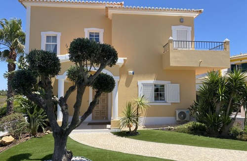 Fantastic opportunity to rent this three bedroom villa in the most sought after area of Lagos behind the 4km long Meia Praia Beach. The villa is on a quiet residential road nestled on a hill in a picturesque and established area on the edge of the recently redesigned Palmares Golf course . The accommodation is situated over two levels with a roof terrace and balcony that has panoramic views of the Monchique Mountains. The private pool can be accessed from the living room and kitchen with plenty of covered and uncovered terrace areas for relaxing and sunbathing. In addition the property boasts beautifully landscaped gardens. The villa has been furnished with great care and to a very high standard by utilising a local interior designer. Spacious open plan living area and dining room, well equipped Siemens kitchen and free wireless internet access. Master bedroom with King Size bed, second bedroom with twin beds and third bedroom also with twin beds. Aqua-parks, championship golf courses, and fantastic beaches all in easy reach.