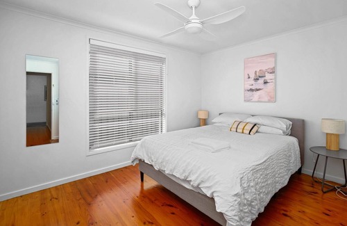 With air conditioning and modern furnishings throughout and Wi-Fi to help keep you connected, Laguna House is a great base to unwind or explore the region. With an open plan kitchen with modern appliances, breakfast bar, dining and loungeroom, you will find hardwood floors and stone tiles to keep the home cool. With three bedrooms with two queens and two king singles, you'll arrive to the beds made up with linen and towels ready for the bathrooms, just don't forget to pack your beach towels to make use of the Lake or beaches.