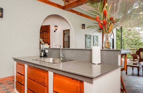 Casa Tuani is a luxurious lakefront Villa on the shores of the Laguna de Apoyo natural reserve. Here you will enjoy the epitome of indoor-outdoor living and soak in the spectacular panoramic laguna views. The home is right on the lakes edge so you can easily swim in the thermal waters or take out one of our kayaks. The vacation retreat is fully appointed with everything you need for a comfortable stay including a chef's kitchen, air-conditioned bedrooms, filtered water, barbeque and firepit. Sitting on over 3 acres of lush tropical forest, Casa Tuani provides a comfortable and secure location to enjoy the wonders of nature in style. Traveling bands of monkeys frequent the property where you can often enjoy seeing them and some of the area's 273 species of exotic birds from the balcony and grounds - and you will be free to wander the property and enjoy any of the tropical fruits that may be in season during your stay. Each of the two bedrooms is spacious in size with a comfortable bed, air-conditioning, and private bathroom access. The house has very dependable fiber optic Wi-Fi with a dedicated workspace for those needing to stay connected during their journey. Special services such as private massage, meal services, and pre-stocking the villa with groceries and transportation to or from the airport are available upon request at an additional cost and with advanced notice.