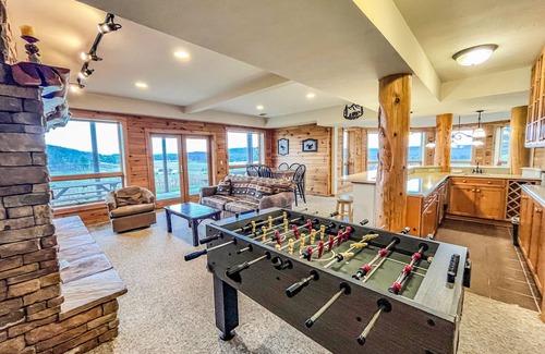 Stunning inside and out, you won't want to miss out on a picture-perfect vacation at Chateau Royale! This home is a true masterpiece of design and comfort, outfitted with all your favorite vacation amenities like a pool table, hot tub, fire pit, lower level bar, and more. Perhaps where this home shines brightest, though, is in the amenities just outside the home. As a part of the exclusive Waterfront Greens community, you are just a short drive away from amazing, free amenities like a Par 3 community golf course (walking course; bring your own clubs), miniature golf, tennis courts, and lake access for swimming and lakeside picnics.