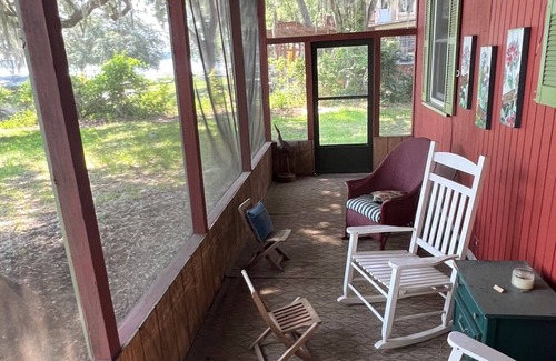 Charming cabin on Lake Broward. Get away from the crowds on the peaceful, private spring-fed lake! Watch the sunrise on the dock with a cup of coffee. Bring your canoes, paddle boards, and fishing gear. After a day on the lake, take a dip in the saltwater pool, grill out on the patio, and relax by the outdoor fire pit.