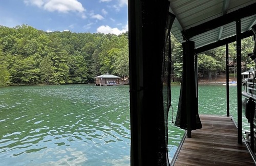 Privately owned home located directly on Lake Keowee with a floating dock. The dock has 2 moorings on either side and a swimming ladder. The house is well equipped with essentials, including washer and dryer, gas grill and satellite TV.