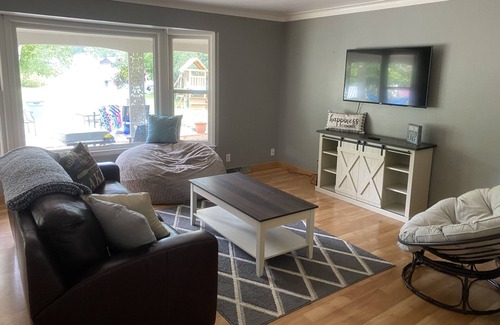 Beautiful all-year home made for summer fun. 2 1/2 hours from Chicago and Detroit, this 3 bed 2 bath sits on a beautiful lake 30 minutes from Kalamazoo and South Haven. 15 minutes from Timber Ridge Ski Resort! In the heart of Michigan’s wine country you can relax and enjoy all the summer fun Michigan has to offer. Just outside the door enjoy a large deck, toddler play set, private dock for fishing and swimming, kayaks, paddle board, lily pad, and lake floats- all available for your use! Also available for rent is our 2020 Bentley Pontoon, please inquire to host for details.