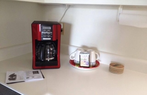 We have a fully equipped kitchen including microwave and dishwasher, a washer/dryer, and there's also a sliding glass door in the living room going to the same over sized deck as the master bedroom slider , with a ceiling fan. With 2 large glass sliding doors you’ll be able to see the expansive cove view and the main channel. The kitchen has all the dishes, glasses , silverware and pots and pans you’ll need.
