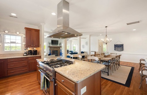 Perfect for two families (or twoand grandparents) with large living and dining spaces, large deck off the main house, firepit and expansive sun deck and lower dock for water activities. (Sleeps up to 18 but no more than 12 adults as we do not allow adults on top bunk). Huge chef's kitchen with gourmet stove, large pantry and tons of counter space for everyone to bring their favorite snacks to share for the week. Large dining table seats 10 with 3 bar stools and additional outdoor dining off main level has a table for 6 and a grill. Main floor primary bedroom has views of the water and large private bathroom. Below there are two bedrooms, each having a queen and two sets of bunk beds and two full bathrooms. Additional sleeping on murphy bed in basement game room and upstairs on pull out couchl. Air hockey table in game room and a table for cards and games! Outside at the house there is a firepit and plenty of air chairs to take in the views. Down at the water, enjoy huge sun deck & lower dock w/ 15ft deep water perfect for swimming & jumping. Kayak, SUP's, swim dock, water bench, grill, dock fridge, fishing, & boat launch nearby. Starlink internet. May-Sept: 4 night minimum;
