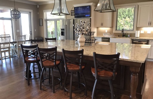 Beautiful new lake home (2017), with wide open lake views, located midsection on East shore of pristine Lake Keowee, SC. Convenient access to Clemson (15 miles), Seneca (18 miles), and Greenville (33 miles). Designed for multigenerational family or multi-family vacations, reunions, holiday events, biking and golf groups, Clemson events, etc. Week and long weekend rentals. Open floor plan with multiple large gathering areas. Six bedrooms and eight bathrooms. Great Holiday home and for all four seasons!