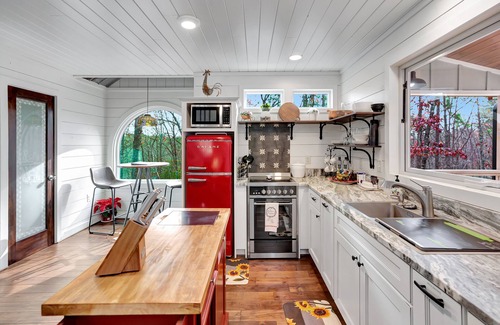 Experience the ultimate in lakeside luxury at our one-of-a-kind architectural retreat. The Sunflower house is a newly built, “2023” tiny home nestled near the tranquil waters of Lake Jocassee. Even though we are not right on the water, this exclusive rental offers a serene spa-like atmosphere, perfect for adults seeking a rejuvenating escape. With an accommodation for up to 4 guests, our unique sanctuary promises a truly unforgettable stay. Unwind in style and indulge in the beauty of our distinctive retreat, designed to inspire relaxation and tranquility. This location is also perfect for those who enjoy hiking, fishing, kayaking or just spending time on the beautiful waters of Lake Jocassee surrounded by the Blue Ridge Mountains. If you're a Clemson Tiger fan, we are only 30 minutes away from the national champs stadium in Clemson, South Carolina. Experience the golden corner of the state and have an unforgettable stay at the sunflower house!