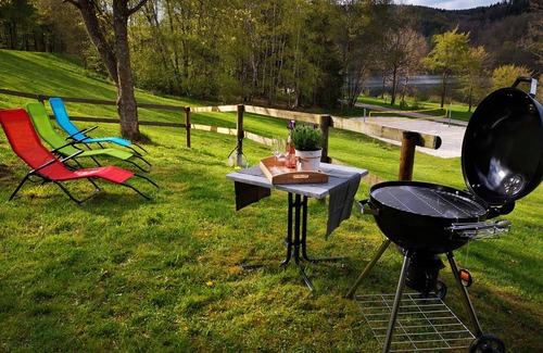 On the lake side there is a spacious terrace with garden furniture and loungers, grill and access to your private lawn. The surrounding balcony and the terrace are fenced. Enjoy the beautiful view from there, while your children and pets can romp and play safely.