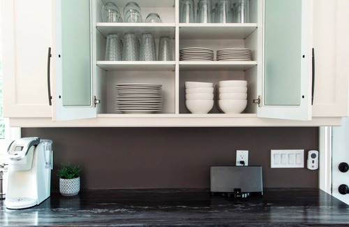 No hand me downs here - you have a full 16 place setting of dishes, many serving platters, and non-stick cookware - everything to make your stay feel as luxurious and comfortable as possible. Keurig machine makes your coffee quickly, so you can get back to the relaxing you deserve.