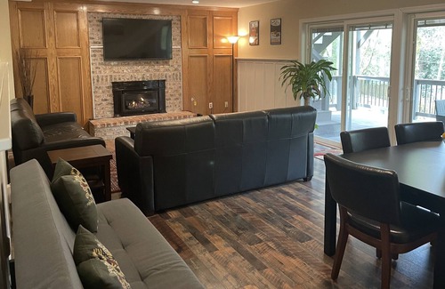 1400 SF unit with separate/private entrance and lake access! Spacious great room with two full-size couches, sleeper, gas fireplace, large-screen smart TV & dining for 6. Full kitchen with washer/dryer. Outdoor patio with BBQ gas grill overlooking 1/2 acre lot. 2 bedrooms, 1 large bathroom suite w/ jet tub.