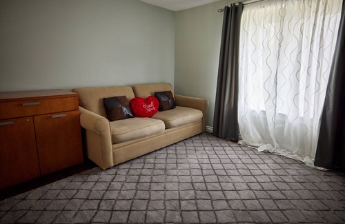• Living Room with 50” TV, sofa, loveseat and chaise lounge