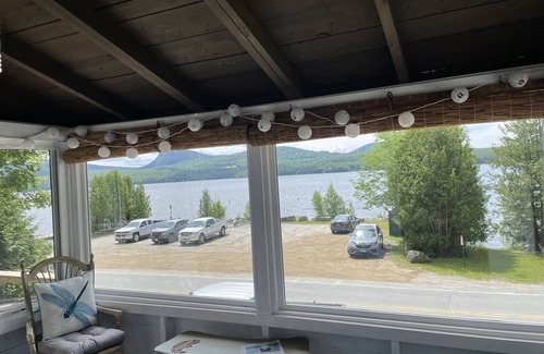 The Hut at Willoughby! Bring your boat, dock access. Located directly across from the Lake Willoughby public boat launch so you can drop your boat or kayaks in. Plenty of room to park your truck/trailer at The Hut. The cottage is cozy, furnished, 1 bedroom, 1 bath, full eat-in kitchen, absolutely lovely sun porch for sitting and watching the lake, and even stained-glass accents. Propane heater. Brand new two-tiered deck, new gravel parking area.. Across the road there is 20 ft. owned sandy beach on the lake, shared with only 1 other owner. Your very own 64 foot aluminum Hewitt dock for your boat. We also have a wood fired hot tub for your use. Small loveseat opens to sleeping space for small person or child. Please note our dock is in from late May until mid October.
