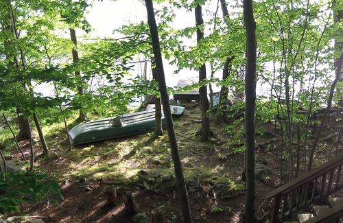 Lakefront, cozy 1 BR that has the feel of a treehouse. Natural tree shading for that cool feel even during the hottest of days, no matter where you sit on the wrap around deck, or while gathered around the Weber charcoal grill (included). If you are looking to enjoy your vacation stay from sunrise to sunset engaging in the outdoors and to disconnect from work, then this location is for you. The cabin is located within Eagle Lake Community Association, a private recreational community which offers two beaches to enjoy, communal pool (open end of June until early September), tennis fields, playgrounds, baseball field, basketball court, great hiking, community activities for kids and families, and fishing in the 70 acre Eagle Lake (catch and release only). Boat (Coleman Crawdad jon boat) and private dock included. New furniture. Near cul-de-sac so very little traffic!