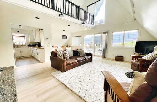 No bank, sandy beach, waterfront on Lake Entiat. A hot tub built on waters edge provides an unparalleled view. Private boat launch, expansive heated deck, enjoy ski/paddle/kayak with most protected waters on lake. 4 season- perfect 4 family- 4 Br, 3bth A-frame , 2700 sq ft, game room, putting green course, outdoor BBQ & flat iron grill, mooring buoys, shared dock, large yard. Two paddleboards, kayak and various life vests. 20 mi Leavenworth & Mission Ridge ski, Lake Chelan. Oktoberfest, Lights of Christmas, Chelan Winterfest, wineries, biking, hiking, and cross country downhill ski.