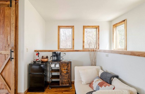 The oversized bedroom upstairs can be locked for complete privacy! It has a mini kitchen and keurig coffee and it’s own private deck overlooking the lake! Also has a private luxury bathroom with a double vanity and beautiful soaker tub. A huge walk-in shower with natural lighting and room for 2!