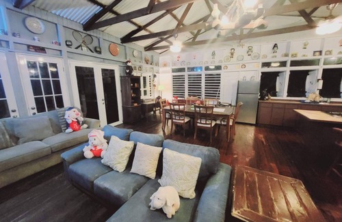 Escape the city and connect with nature. This lake house for couples, groups and families offer a unique lodging experience. Hang out and unwind in this rustic style country house. All built of wood with doors and windows that open in an old-fashioned way. Relax in the hammock on the balcony, take out the kayaks or paddle boards to explore the lake, or soak up the sun on the dock. Enjoy night-time soundscapes featuring Coqui frogs. We're open to serve and provide everything you might need during your stay.