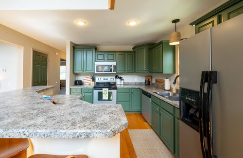Enjoy the convenience of being right on the lake. Wake up to the spectacular view of the lake and enjoy your coffee on the deck. Spend your days fishing, swimming and kayaking. Enjoy a day of golf or walking/biking on the quiet streets that surround the home. Walk to the pool and tennis courts (see pool restrictions below).The lawn is perfect for an afternoon playing games (various games provided). Nights can be spent with dinners cooked on the supplied gas/charcoal BBQ and around a cozy lakeside fire. S'mores kits included!!!
