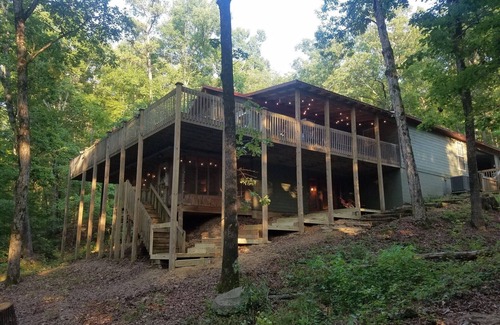 High-speed (fiber-optic) internet now available! This 2,800 sq ft home has 4 bedrooms (1 king, 2 queens, 2 sets of bunk beds and a sofa sleeper) for a total of 12 guests. The kitchen was recently updated with all new stainless steel appliances and quartz countertops. There is a fire pit, ping-pong table, pool table, two tandem kayaks, canoe and waterfront access to Greer's Ferry - bring your water toys! The top tier of the porch is perfect for sunbathing while the bottom screened porch offers a bug-free, shaded experience. The property is secluded--adjacent to 150 acres of undeveloped forest--yet, about 3 miles from Cove Creek Campground which boasts a public boat ramp and sandy beach. In addition to the lake, there's great hiking, fishing and floating in the Little Red River, and the restaurants of Heber Springs a short drive away. The .25 mile drive from the top of the bluff down to the cabin is a very steep, winding, asphalt road; for your safety, we recommend you plan your inaugural trip in the daylight. We're honored to have you as our guest. Please no pets, you might disturb our treasured resident armadillo, Archie.