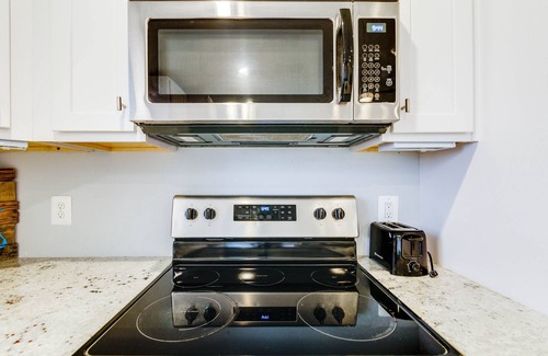 Facing the waterfront facing is a nice size porch with a gas grill for quick and delicious meals anytime! *Don't forget to click the tongs twice ;)