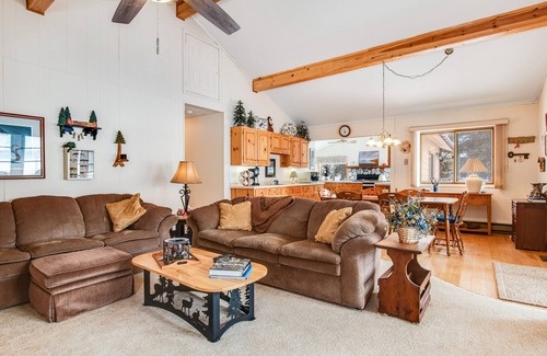 Easily stroll to miles and miles of beautiful hiking and biking trails weaving through this gorgeous region of ten lakes. Inside the home, find ample room to both relax and entertain between the two living areas. The spacious kitchen is appointed with a full suite of appliances as well as helpful cookware and gadgets.