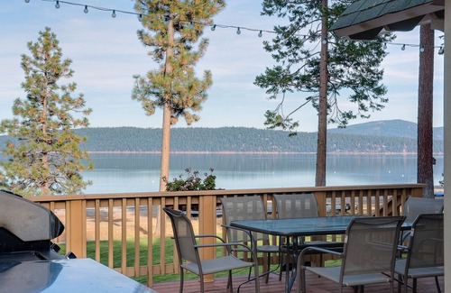 Recently remodeled 4 bedroom / 2.5 bath lakefront home (sleeps 10) in the Lake Almanor West community. You'll enjoy all that Lake Almanor has to offer! Downstairs, there is a fully stocked kitchen with walk-in pantry, dining room table, large laundry room/mudroom, living room with a flatscreen smart TV (for entertainment, the home includes DVD player, variety of family-friendly DVDs and games, WiFi), Bedroom #1 (King bed with lake view), Bedroom #2 (twin bunkbeds) and full bath. Upstairs, you'll find Bedroom #3 (King bed with lake view, balcony, and large primary bath) and Bedroom #4 (Queen bed, Twin bed, Full bed and 1/2 bath). The large, wraparound deck has a gas grill, outdoor cooking/prep table, 2 dining tables with seating for 10+, and a spectacular lake view! A large, gently sloping lawn leads you to the water's edge where you'll have access to 3 kayaks and a large, custom dock (accommodates 2 boats), and 2 buoys. There is ample parking in front. Your group will have access to the Lake Almanor West amenities such as the private community boat launch, private rec area (includes a playground, volleyball and basketball courts, bocce courts, lake access), Tennis and Pickleball courts, and a lovely 9 hole golf course, with driving range, pro shop and restaurant. Home includes a wide variety of board games and puzzles as well as outdoor lawn games. This lakefront home is the perfect setting for a memorable family vacation. (Please note: 7 night minimum. No smoking, no pets, no events, and strict maximum of 10 guests.)