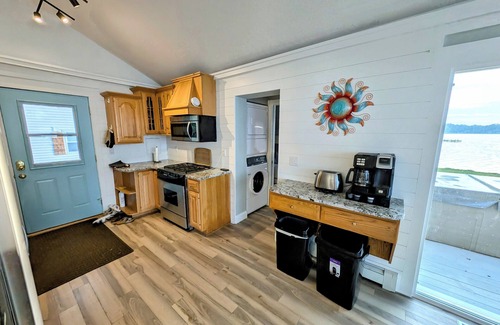 Includes misc water toys, 2 kayaks, 2 paddle boards, and a paddle boat, 40ft dock with room to park your boat. the public launch is 1/4 mile away. 180 degree panoramic views of the water. Natural gas fire pit on the lakeside. Weber gas grill on deck.