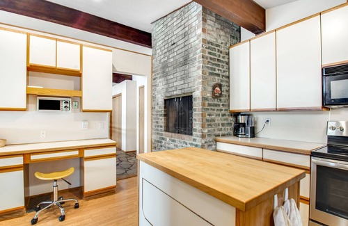 Inside, you'll be amazed at the full kitchen with stainless steel appliances, and a wall of windows brings the outside in. During the day enjoy the sunshine with your private dock and owner-provided paddle boat available for guest use. When the sun goes down, you can peek through the telescope and study all of the visible constellations. This home provides an office room with a comfortable desk chair, printer, and free WiFi which will make it easy for remote workers and students to perform some online research for their last-minute projects.