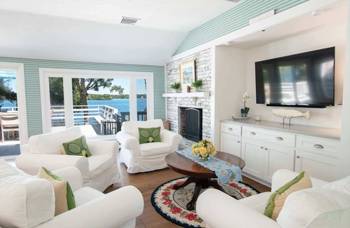 Nestled in the heart of Cape Cod, this stunning home promises an unparalleled retreat that seamlessly marries sophistication with coastal charm. Wake up to your waterfront view of Wequaquet Lake, a 654-acre body of water with 7.5 miles of shoreline. As you find your way to the property, the excitement will only build as the true privacy of the home sets in. Pull right up to the front door, stretch your legs and unpack your bags - you've made it. Immediately be captivated by the lush, manicured gardens that envelop this private haven. The scent of blooming hydrangeas mingles with the salty air, setting the stage for an unforgettable getaway.