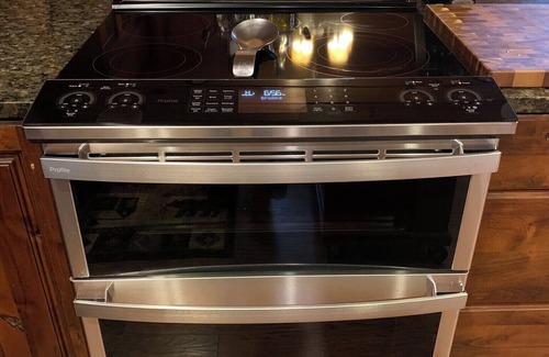 The open floor plan on the main level with cathedral ceilings, stacked stone wood burning fireplace, 55" TV Starlink wifi with Roku streaming stick for movies and live TV, large sectional couch, 2 amish rocker chairs, multiple board games, and a gourmet kitchen featuring all stainless steel appliances, granite countertops, fridge w door water/ice, stainless steel oven, Mr Coffee, Keurig, Cuisinart expresso/capuccino maker, food processor, crock pot, air fryer, instant hot pot, George Forman grill, large griddle, blender, waffle maker, additional counter top 26 lb ice maker, and cook/dining ware for 16 guests. Full sized washer and dryer in pantry kitchen area.