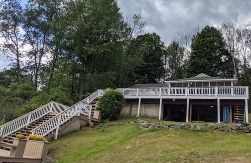 Located at Acre Lake on Lakeview Drive in a lovely Northeastern Pennsylvania Community. Ski at nearby Elk Mountain during the winter or catch some fish on this 40-acre lake year around. Then, sit back and enjoy the peaceful and private accommodations that this newer furnished home has to offer. This 3 bedroom, 2 full bathrooms, also includes 3 smart TVs, extra space in the basement (recently renovated), plus a full-size washer and dryer, fishing boat with trolling motor, a 2-person kayak, and a pedal boat.