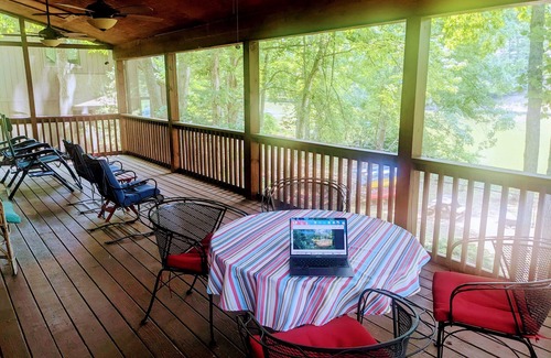 Lakefront retreat with huge screened-in porch is located in Locust Grove. Lakefront retreat with huge screened-in porch provides accommodation, featuring Pool, TV, Balcony/Terrace, among other amenities. This House features Pool, TV, Balcony/Terrace, to make your stay a comfortable one.