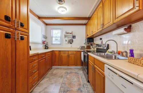 This peaceful home on a quiet street sits right on Claytor Lake. It features two bedrooms and one bathroom. Bedroom 1 has a bed that converts from a full to a king and includes extra pillows, blankets, and beach towels in the closet. Bedroom 2 has a queen bed. The bathroom has a walk-in shower.